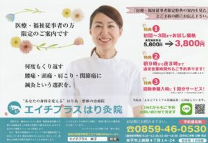 この度、エイチプラスはり灸院では医療・福祉従事者の方限定で